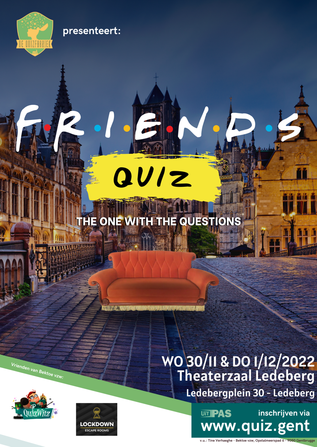 Weet je alles over Monica’s exvriendjes en Phoebes alterego’s? Waren Rachel en Ross nu effectief 'on a break', of toch niet? Ken jij Joeys beste versiertruc? En weet jij in godsnaam wat Chandler zijn job nu eigenlijk is? Dan ben jij de friendsfan die wij zoeken voor een spannende en spectaculaire quizavond.